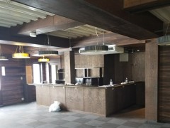 厨房設備工事の注意点は炭で焼いた油煙で近隣住民に迷惑をお掛けしない事と店内に煙が漏れない事でした。