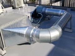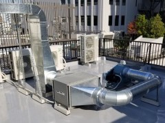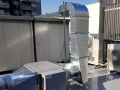 外部油煙は屋上に排煙処理装置を取り付けて煙が出ない状態にいたしました。