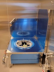 業務用厨房で使用するスープレンジは、安定性と加熱効率が重要です。今回のご依頼では、大型寸胴鍋を安全かつ安定して使用できるスープレンジを特注製作しました。