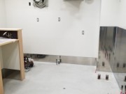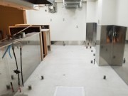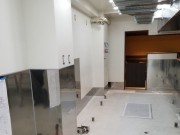 ・厨房防水工事の立ち上がり(高さ200mm)部分にステンレス板を貼り、耐水性を強化。